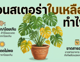ถ้าคุณกำลังเลี้ยงมอนสเตอร่าอยู่แล้วเจอปัญหา ใบเหลือง ไม่ต้องตกใจครับ นี่คือปัญหาอันดับ 1 ที่คนปลูกมอนสเตอร่าเจอกันเกือบทุกคน มอนสเตอร่าใบเหลือง — ปัญหายอดฮิตที่แก้ได้! บทความนี้จะแจกแจงให้ครบทุกสาเหตุ พร้อมวิธีแก้ที่ทำได้เลยวันนี้ ทำไมมอนสเตอร่าถึงใบเหลือง? 1. รดน้ำมากเกินไป (สาเหตุอันดับ 1) นี่คือสาเหตุที่พบบ่อยที่สุดเลย คนส่วนใหญ่รดน้ำด้วยความรัก แต่กลับทำให้รากขาดออกซิเจน อาการ: ใบเหลืองเริ่มจากใบล่าง ดินชื้นแฉะตลอดเวลา รากมีกลิ่นเหม็น วิธีแก้: รดน้ำก็ต่อเมื่อดินชั้นบน...