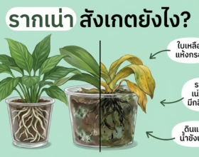 รากเน่าคือ ฆาตกรเงียบ ของต้นไม้ประดับ เพราะกว่าจะรู้ตัวก็สายไปแล้ว — ใบเหี่ยว ลำต้นนิ่ม ดึงขึ้นมาเจอรากดำเละ ข่าวดีคือ ถ้าจับได้ทัน ยังช่วยได้ครับ บทความนี้จะสอนตั้งแต่วิธีสังเกตอาการ จนถึงขั้นตอนตัดรากเน่า เปลี่ยนดิน แล้วฟื้นต้นไม้กลับมาได้ รากดี vs รากเน่า — จับสัญญาณให้ทัน สาเหตุรากเน่า — ทำไมรากถึงเน่า? 1. น้ำมากเกินไป...