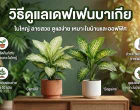 เดฟเฟนบาเกียคืออะไร ทำไมถึงฮิตในออฟฟิศและบ้าน เดฟเฟนบาเกีย (Dieffenbachia) คือไม้ประดับใบขนาดกลางถึงใหญ่ที่ได้รับความนิยมมากทั้งในบ้าน คอนโด และออฟฟิศ เหตุผลง่ายๆ คือมันสวยมาก ใบใหญ่ลายชัด สีสันโดดเด่น ทั้งลายขาว เหลือง เขียว และผสมกันหลากสี แถมยังทนแสงน้อยได้ดีกว่าไม้หลายชนิด เดฟเฟนบาเกีย ไม้ประดับใบสวย เหมาะทั้งบ้านและออฟฟิศ ในภาษาอังกฤษบางคนเรียก Dieffenbachia ว่า “Dumb Cane” เพราะยางในต้นมีฤทธิ์ทำให้ปากชาชั่วคราวถ้าเผลอกิน...