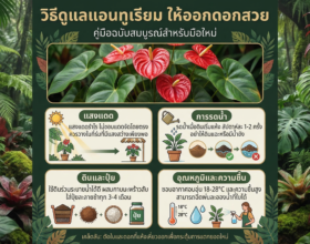 แอนทูเรียมคืออะไร และทำไมถึงนิยมปลูก? แอนทูเรียม (Anthurium) หรือที่หลายคนเรียกว่า ต้นหน้าวัว คือไม้ประดับดอกสวยที่ปลูกได้ทั้งในบ้านและนอกบ้าน ดอกของมันจริงๆ แล้วไม่ใช่กลีบดอก แต่คือ ใบประดับ (spathe) รูปหัวใจสีแดง ชมพู ส้ม ขาว หรือม่วง ที่ดูโดดเด่นตลอดทั้งปี โดยมีแกนดอกยื่นยาวออกมาตรงกลาง แอนทูเรียม (หน้าวัว) ต้นไม้ดอกสวยที่ดูแลง่าย ออกดอกตลอดปี เหตุผลที่แอนทูเรียมได้รับความนิยมสูงมาก: ดอกสวยติดทนนาน...