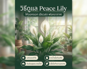 Peace Lily คืออะไร ทำไมคนรักต้นไม้ถึงต้องมี Peace Lily หรือ สปาทิฟิลลัม (Spathiphyllum) คือหนึ่งในต้นไม้ประดับที่ได้รับความนิยมมากที่สุดทั่วโลก และก็ไม่น่าแปลกใจเลย เพราะมันมีครบทุกอย่างที่คนรักต้นไม้ต้องการ — สวย ดูแลง่าย ทนทาน และยังช่วยฟอกอากาศในบ้านได้ด้วย Peace Lily สปาทิฟิลลัม ต้นไม้ประดับฟอกอากาศ ดูแลง่าย ดอกขาวสวย ลักษณะเด่นที่ทำให้ Peace...