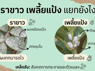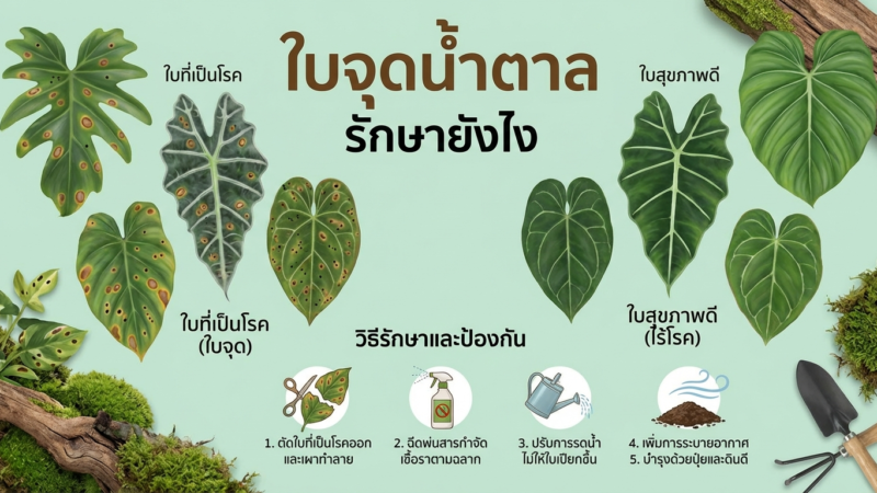 4. ป้องกัน: รดน้ำที่โคน ไม่ราดใบ + ลมผ่านดี
