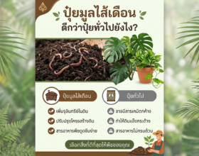 ปุ๋ยมูลไส้เดือน (Vermicompost) ดียังไง — วิธีใช้สำหรับไม้ประดับในบ้าน ถ้าพูดถึง “ปุ๋ยอินทรีย์” ที่คนปลูกต้นไม้ยุคใหม่นิยมกันมากที่สุดตัวหนึ่ง คงหนีไม่พ้น ปุ๋ยมูลไส้เดือน หรือที่เรียกเป็นภาษาอังกฤษว่า Vermicompost ปุ๋ยชนิดนี้ทำมาจากมูลของไส้เดือนดิน ซึ่งผ่านกระบวนการย่อยสลายสารอินทรีย์ ทำให้ได้ธาตุอาหารที่ละเอียดอ่อน พร้อมดูดซึมได้ทันทีสำหรับรากต้นไม้ ปุ๋ยมูลไส้เดือน (Vermicompost) — ปุ๋ยอินทรีย์คุณภาพสูงสำหรับไม้ประดับ แต่หลายคนยังสงสัยว่า — ดีจริงไหม? ใช้กับไม้ประดับในบ้านได้แค่ไหน? ใส่ยังไงให้ถูกวิธีโดยไม่ทำให้ต้นช็อค?...
