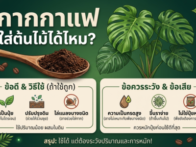 - ใส่ปุ๋ยสม่ำเสมอ — ทุก 2-4 สัปดาห์ในช่วงที่ต้นโตเร็ว จะเห็นความแตกต่างได้ชัดมาก
