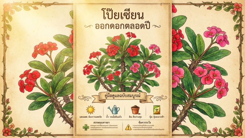 ⚠️ สำคัญ: น้ำยางของโป๊ยเซียนมีพิษ เวลาตัดหรือจัดการต้นให้สวมถุงมือและระวังอย่าให้น้ำยางเข้าตาหรือปาก