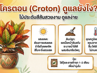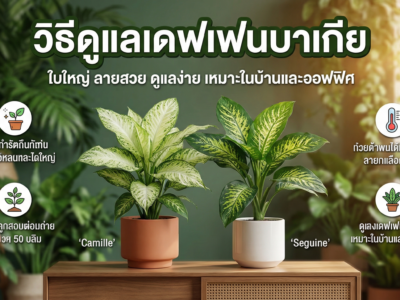 3. ปุ๋ยสม่ำเสมอ — ให้ปุ๋ยทุก 2 สัปดาห์ช่วงโต จะเห็นใบใหม่ใหญ่ขึ้นชัดเจน