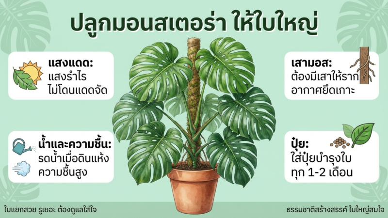 7 เคล็ดลับปลูกมอนสเตอร่าให้ใบใหญ่